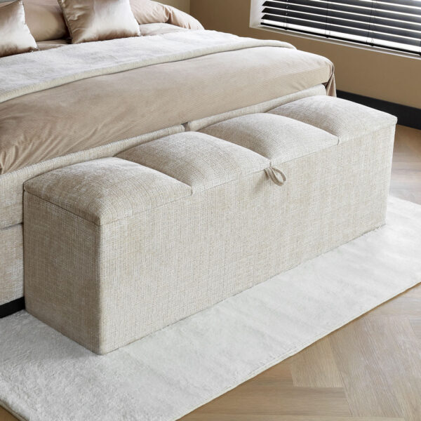 Een van de meest geliefde kenmerken van het Julius bedbankje is de handige opbergruimte die het biedt. Met deze slimme functie kun je allerlei spullen netjes en georganiseerd opbergen, waardoor jouw leefruimte altijd opgeruimd en geordend blijft. Van extra beddengoed tot boeken en speelgoed, alles kan gemakkelijk worden opgeborgen voor een opgeruimd en georganiseerd interieur.