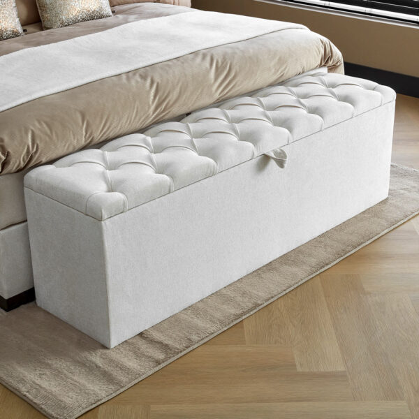 Een van de meest geliefde kenmerken van het MAXIMUS bedbankje is de handige opbergruimte die het biedt. Met deze slimme functie kun je allerlei spullen netjes en georganiseerd opbergen, waardoor jouw leefruimte altijd opgeruimd en geordend blijft. Van extra beddengoed tot boeken en speelgoed, alles kan gemakkelijk worden opgeborgen voor een opgeruimd en georganiseerd interieur.