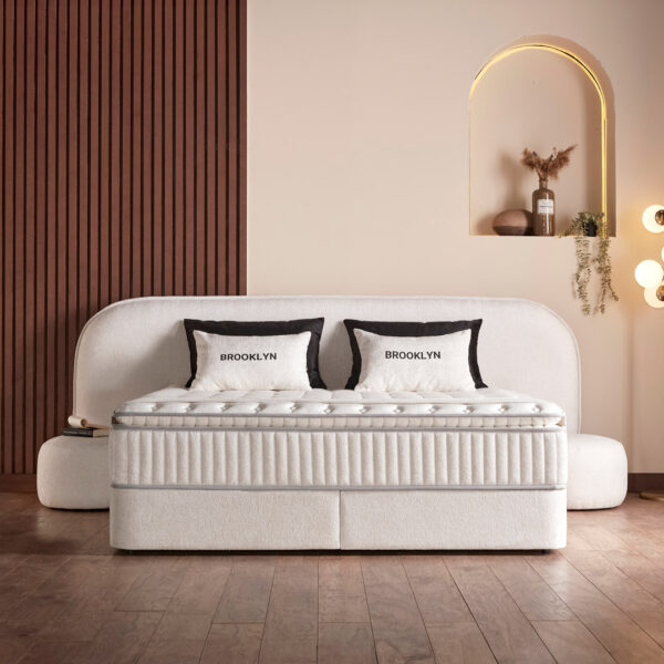 Het opbergbed Brooklyn is een bed met een luxe hoofdbord dat is voorzien van een luxe afwerking. Het hoofdbord van het bed heeft een zachte stoffering. Het design van het hoofdbord is zorgvuldig gekozen om het bed een chique en eigentijdse uitstraling te geven. Het bed wordt geleverd met een luxe matras dat zeer comfortabel is om op te slapen. Het matras is gemaakt van hoogwaardig materiaal en biedt uitstekende ondersteuning aan het lichaam. Al met al is het opbergbed Brooklyn een perfecte combinatie van stijl en functionaliteit, waardoor het een geweldige keuze is voor mensen die op zoek zijn naar een modern en praktisch bed.