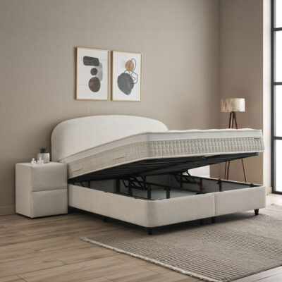 Het opbergbed Fancy is een bed met een luxe hoofdbord dat is voorzien van een hoogwaardige afwerking. Het hoofdbord van het bed heeft een zachte stoffering. Het design is zorgvuldig gekozen om het bed een chique en eigentijdse uitstraling te geven. Het bed wordt geleverd met een luxe matras dat zeer comfortabel is om op te slapen. Het matras is gemaakt van hoogwaardig materiaal en biedt uitstekende ondersteuning aan het lichaam. Al met al is het opbergbed Fancy een perfecte combinatie van stijl en functionaliteit, waardoor het een geweldige keuze is voor mensen die op zoek zijn naar een modern en praktisch bed.