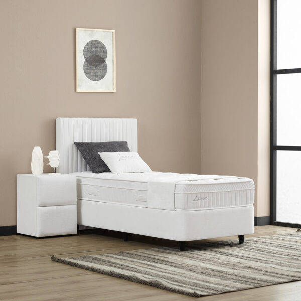 Het opbergbed Laura is een bed met een luxe hoofdbord dat is voorzien van een luxe afwerking. Het hoofdbord van het bed heeft een zachte stoffering. Het design van het hoofdbord is zorgvuldig gekozen om het bed een chique en eigentijdse uitstraling te geven. Het bed wordt geleverd met een luxe matras dat zeer comfortabel is om op te slapen. Het matras is gemaakt van hoogwaardig materiaal en biedt uitstekende ondersteuning aan het lichaam. Al met al is het opbergbed Laura een perfecte combinatie van stijl en functionaliteit, waardoor het een geweldige keuze is voor mensen die op zoek zijn naar een modern en praktisch bed.