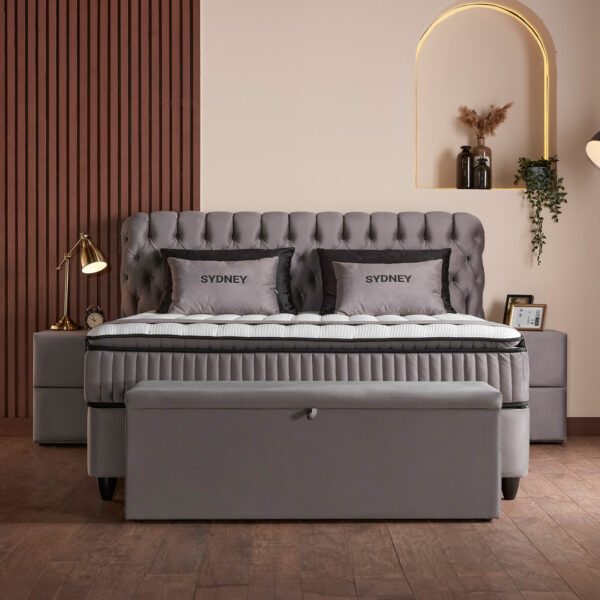 Het opbergbed Sydney is een stijlvol en praktisch bed met een zeer luxe en unieke uitstraling. Het bed is voorzien van een prachtig afgewerkt, gestoffeerd hoofdbord dat direct in het oog springt en een echte blikvanger vormt in iedere slaapkamer. Dankzij het doordachte ontwerp combineert dit opbergbed elegantie met functionaliteit.