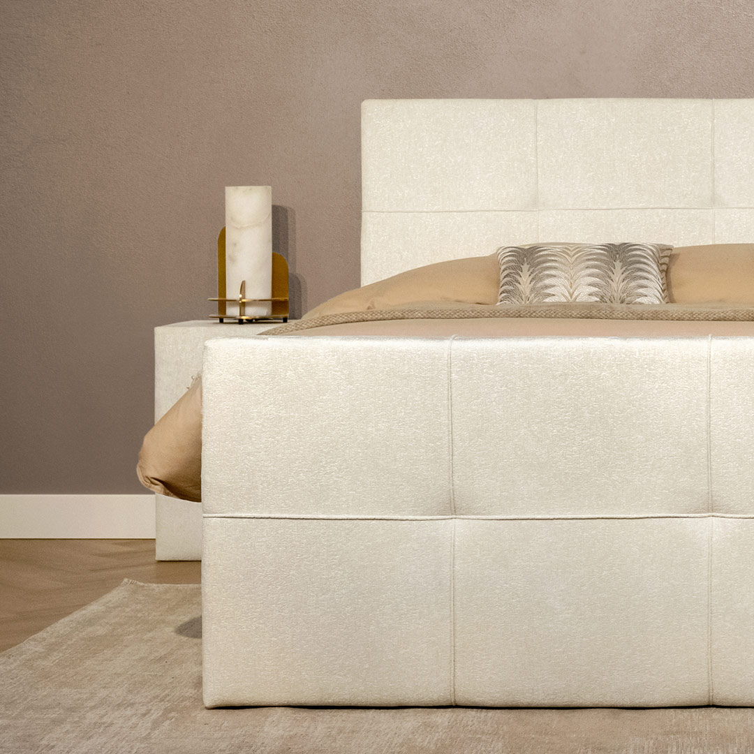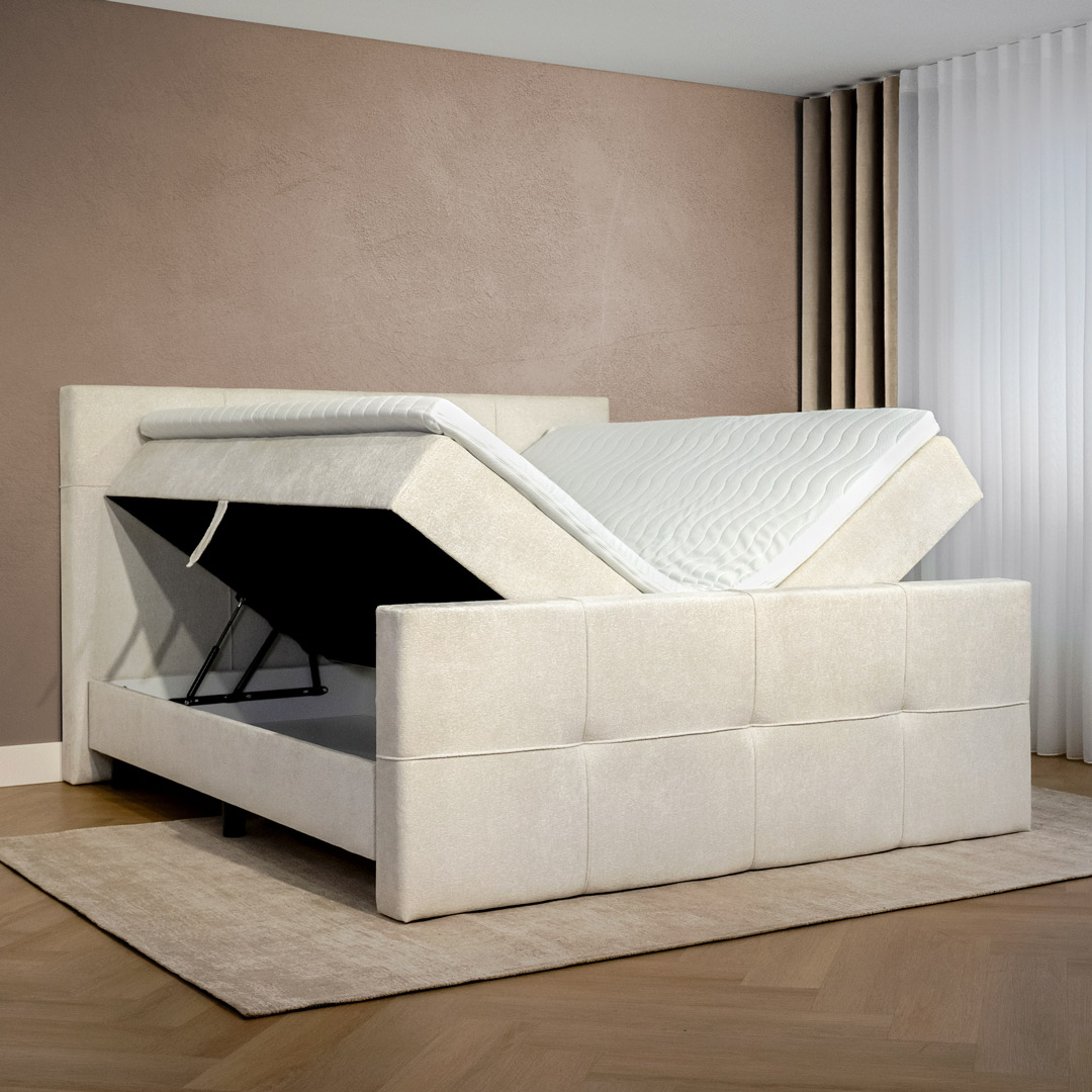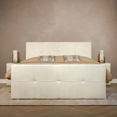 De matrassen zijn stevig bevestigd aan de boxen, waardoor openen en sluiten altijd stabiel en soepel verloopt. Dankzij het krachtige liftsysteem met veerondersteuning open je de boxen moeiteloos. De combinatie van stevig hout en luxe meubelstof zorgt voor een duurzame, stijlvolle en gebruiksvriendelijke constructie.