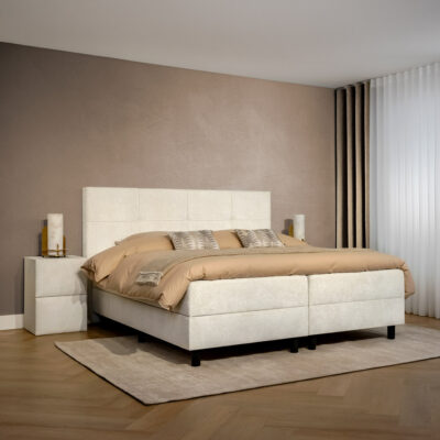 Het grote voordeel is dat u bij ons vrij kunt kiezen uit een uitgebreid assortiment stoffen en kleuren zonder meerprijs. Zo stelt u uw ideale boxspring samen, volledig naar wens en zonder verrassingen achteraf.